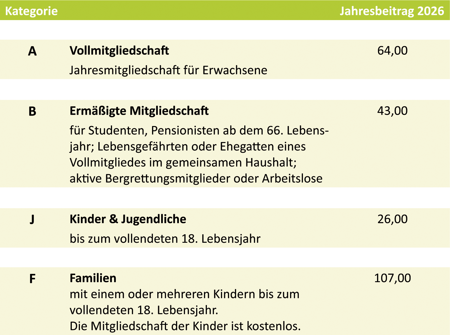 Bitte beachte, dass die Deckung erst mit dem folgenden Tag nach Bezahlung des Mitgliedsbeitrages besteht.