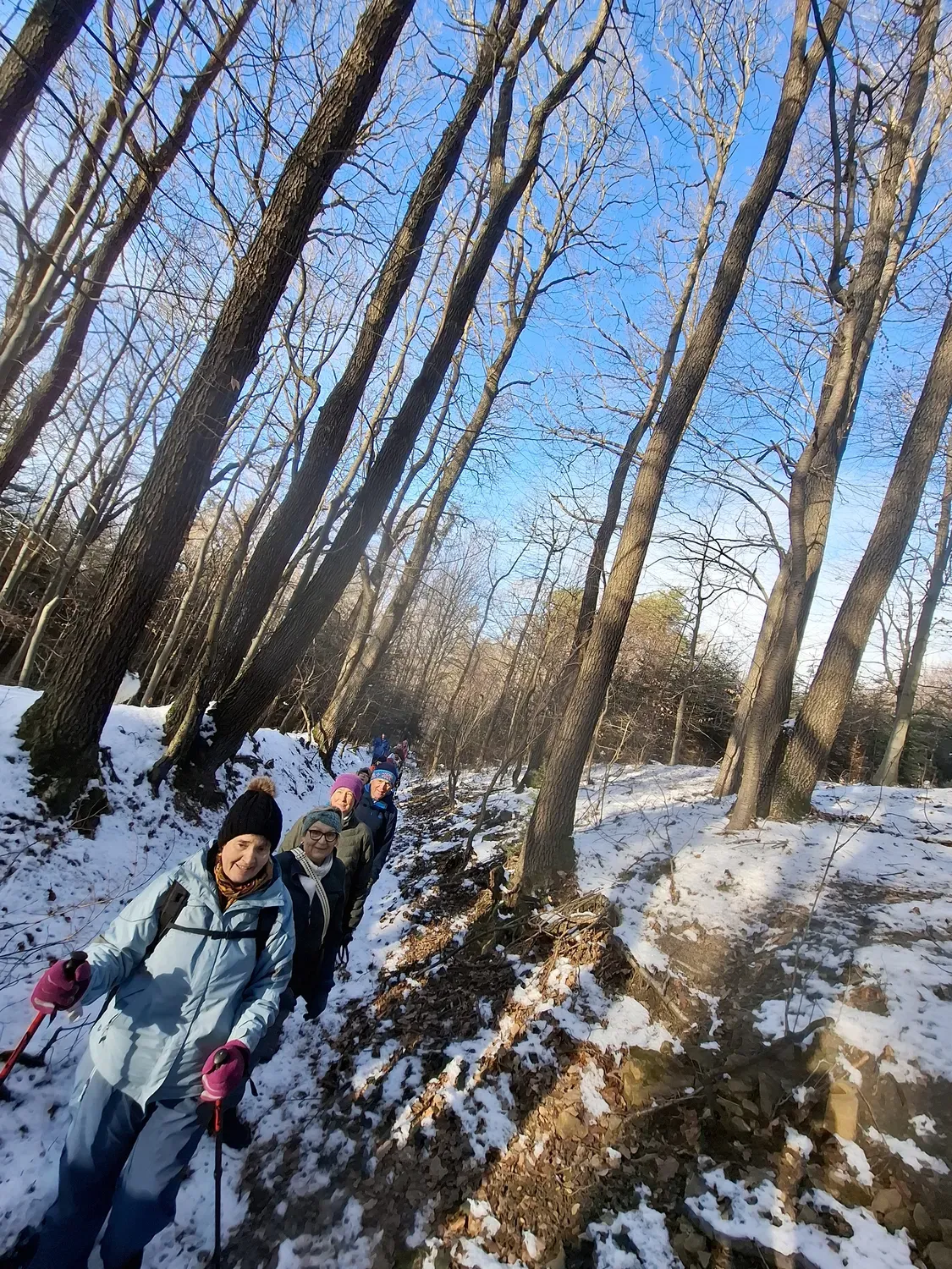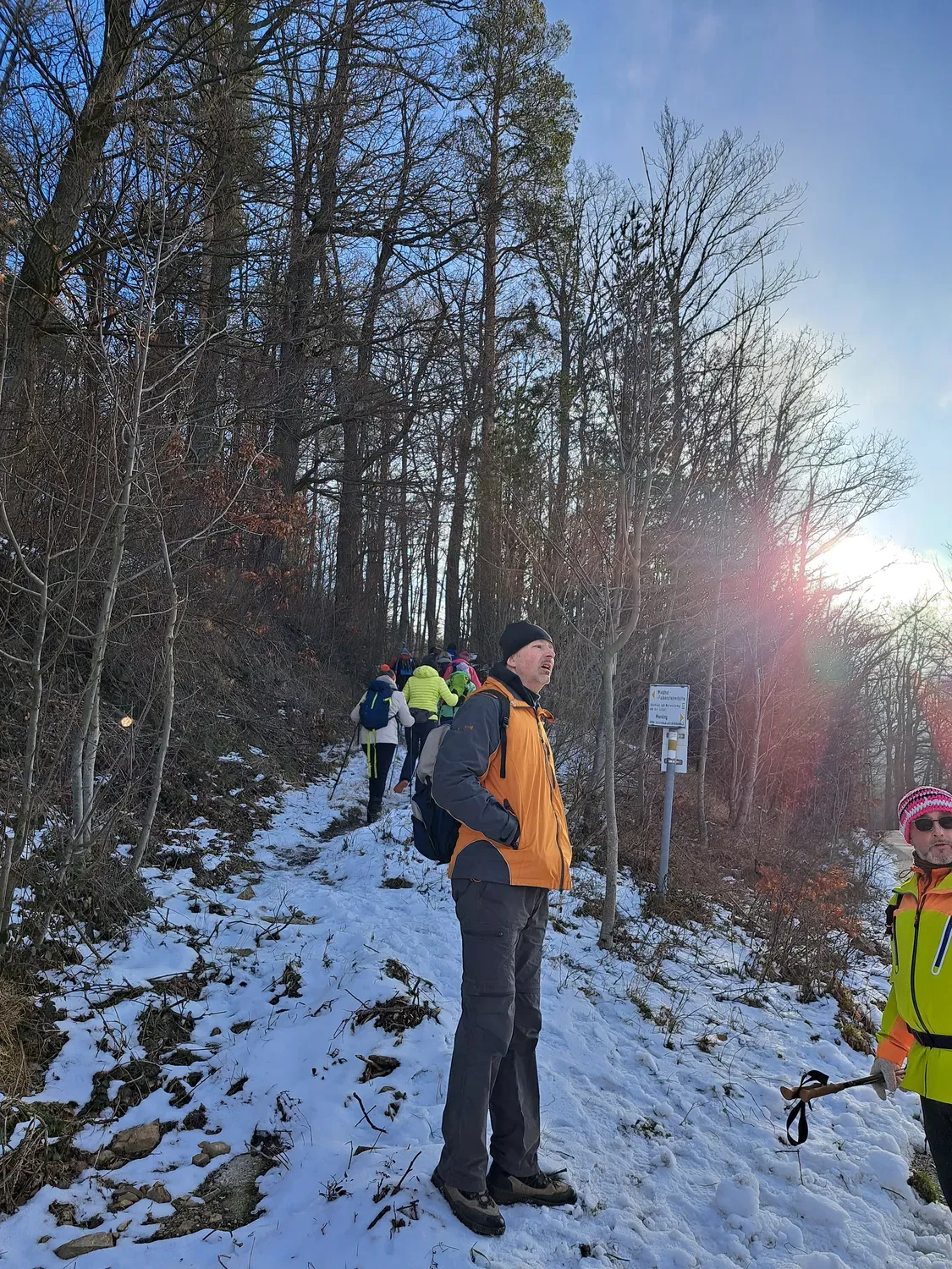 Obmann Friedrich Hackl konnte zur wunderschönen Winterwanderung 24 Mitglieder und Freunde von der ÖTK Sektion Wienerwald begrüßen. Treffpunkt war der Parkplatz beim Nah & Frisch in Neustift Innermanzing. Von dort folgte man den gelb markierten Wanderweg Richtung Schoderleh und Waldhof wo sich eine herrliche Winterlandschaft zeigte. Durch den verschneiten Wald ging es weiter über die Freileiten zum Gasthaus Stegermaier, wo sich die Gruppe schon auf die sensationellen Backhenderln freuten. Nach gemütlichem Beisammensein marschierten die Wanderer über Höfer wieder zurück nach Neustift Innermanzing. Diese Wanderung durch die verschneite Landschaft wird sicher länger in Erinnerung bleiben.