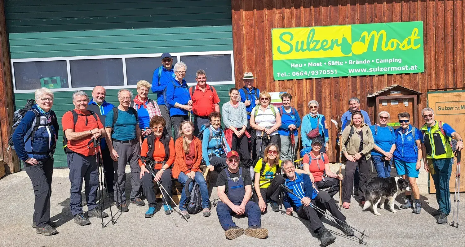24 wanderfreudige unternahmen eine reizvolle Rundwanderung auf den Kaiserkogel bei Eschenau. Bei strahlendem Frühlingswetter mit blauem Himmel und Sonnenschein genoss die Wandergruppe die herrliche Natur und die beeindruckenden Ausblicke. Herzlich empfangen wurden die Wanderer beim Rückweg beim Sulzer Most, wo Most und Schnapserl verkostet wurden.