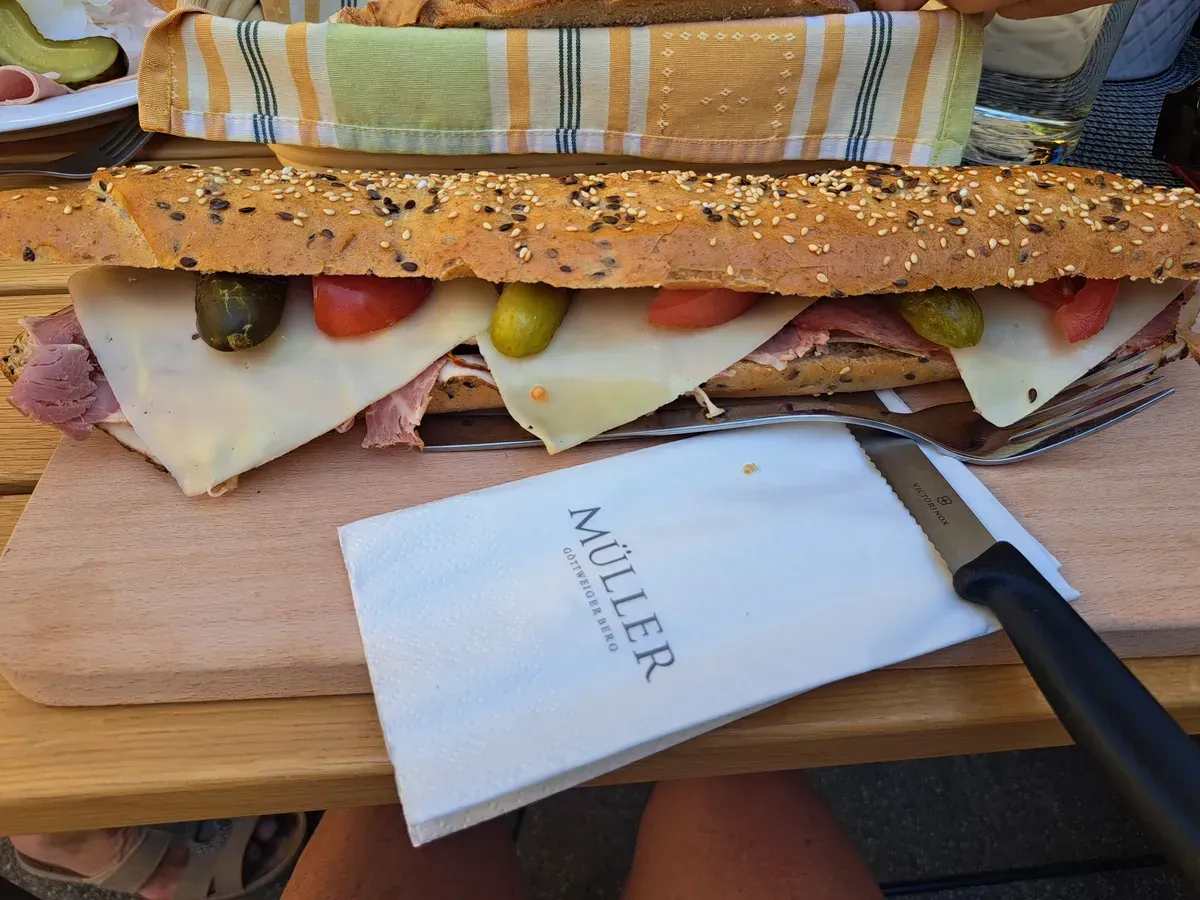 Unseren Abschluss machten wir beim TOP HEURIGEN Weingut Müller in Krustetten, dass wir nach dem sehr warmen Wetter, im kühlen Schatten richtig genossen haben.