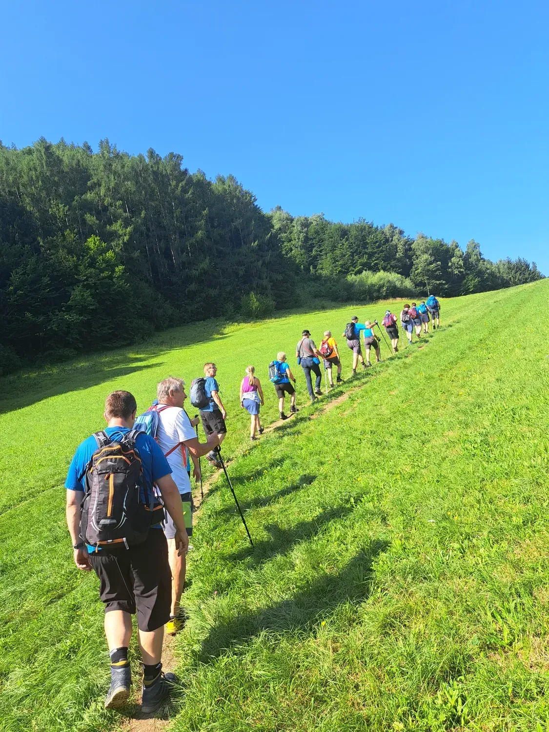 Mit dem Guide Schibich Hubert wanderte eine große Gruppe bei Kaiserwetter vom Stollberg auf den Hegerberg.