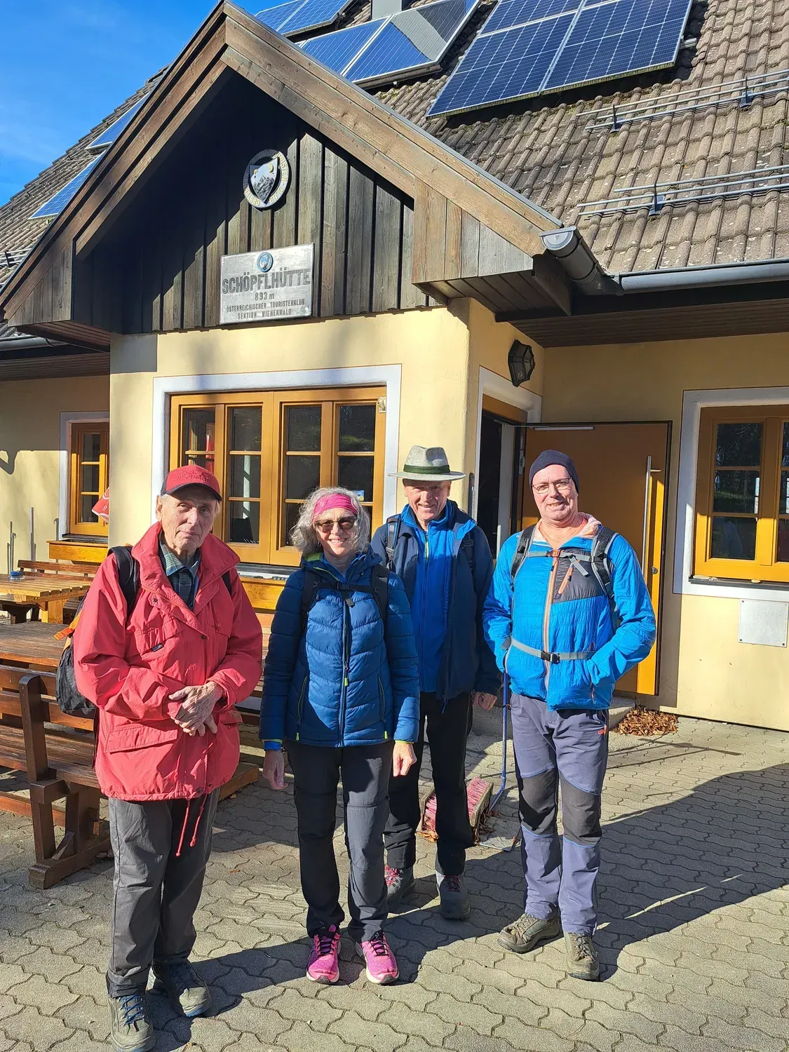 Bei der monatlichen Mittwoch-Wanderung führte unser Obmann Hr. Fritz Hackl diesmal die Wandergruppe von der Klamm auf den Schöpfl. Nach einem verspäteten Frühstück bei Sabines Greißlerei gings bei Kaiserwetter über den Türkensturz hinauf über die Matraswarte zur Einkehr in die Schöpflhütte. Nach dem gemütlichen Zusammensein wurde der Abstieg über Forsthof und Höfer nach Innermanzing in Angriff genommen.