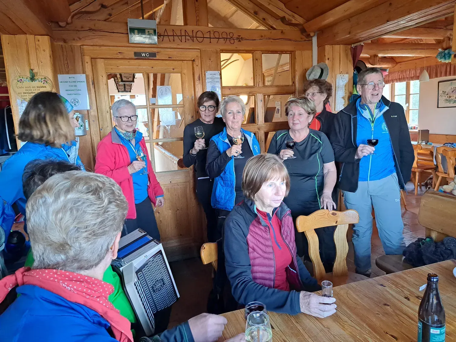 Am Mittwoch den 5. November begann unsere Wanderung auf den Schöpfl von der Rastbank aus. Bei herrlichem Sonnenschein haben wir das Schutzhaus in 1,5 Stunden erreicht. Von der Matraswarte aus konnte man das Laabental nur teilweise sehen, da es im Nebelmeer verhüllt war. In der Hütte verbrachten wir gemütliche Stunden und ließen unsere Geburtstagskinder Hanna und Hermi hoch leben und stießen mit einem Achterl an, bevor unsere Wanderung wieder zurück zur Rastbank ging.